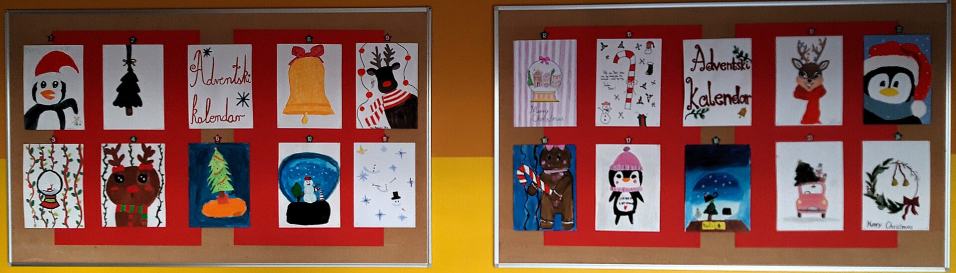 Na panou škole bili su izloženi radovi učenika obilježeni brojevima. Svakodnevno se s panoa skidao jedan rad učenika i na to mjesto stavljao novi prigodan tekst. Tekstovima se učenike nastojalo naučiti nešto novo o božićnim običajima i potaknuti ih na razmišljanje. Na stalku pored adventskog kalendara svaki dan se objavljivala i nova zagonetka, pitalica ili kreativni zadatak. Učenici su točne odgovore mogli ubaciti u šešir snjegovića koji se nalazio pored kalendara. Svaki dan izvučen je jedan sretni dobitnik, nakon čega je slijedilo uručenje nagrade i fotografiranje dobitnika pored kalendara.
