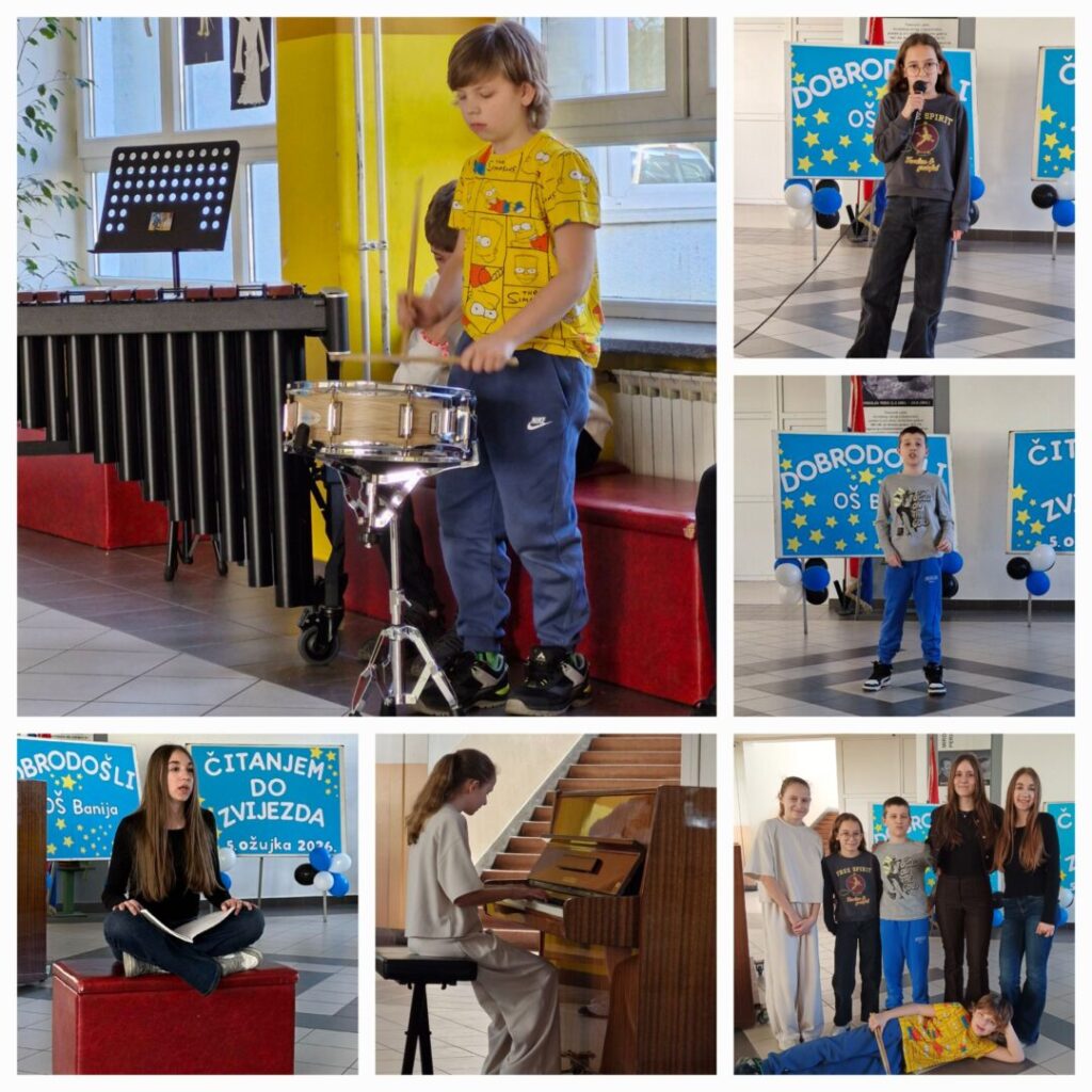 Dana 5. ožujka 2026. godine u Osnovnoj školi Banija održana je županijska razina natjecanja u kvizu znanja i kreativnosti u sklopu nacionalnog projekta „Čitanjem do zvijezda – Kontrasti generacija.“