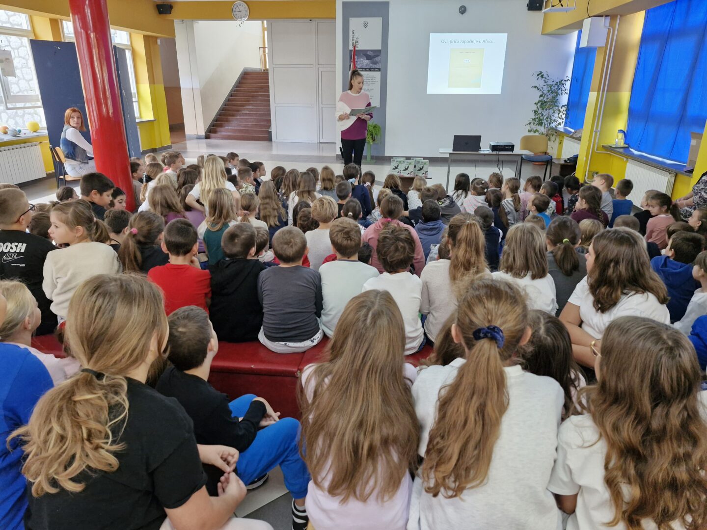 Učenici od 1. do 4. razreda okupili su se u halu škole i sa zanimanjem poslušali ovu inspirativnu priču. Ovo nije samo priča o lastavici, nego i o čovjeku. Kroz Marijinu priču upoznali smo se s malenim žiteljima balkonskih gnijezda, koji svake godine putuju iz daleke Afrike do Karlovca. Čuli smo i kako postoje ljudi koji čine loše stvari i uništavaju njihova gnijezda. Ali, ono još važnije, kako postoje ljudi poput Marije koji pomažu napuštenim i ranjenim životinjama. Druženje je postalo još emotivnije kada smo pogledali fotografije i video pravog Oya. Vidjeli smo kako ga hrane, uče letjeti i na kraju puštaju na slobodu, jer lastavice su stvorene za let nebom, a ne za život u zatvorenom kavezu. Možemo biti bezosjećajni i okrutni te uništavati lastavičja gnijezda, a možemo biti suosjećajni i velikodušni te spasiti jedan malen život. Odluka je samo na nama.