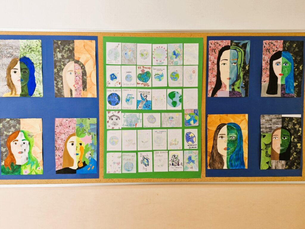 Učenici viših razreda izrađivali su kartice s eko porukama na satovima geografije te kombiniranom tehnikom na satovima likovne kulture prikazali kako se lice Zemlje ogleda u licu svakog čovjeka.