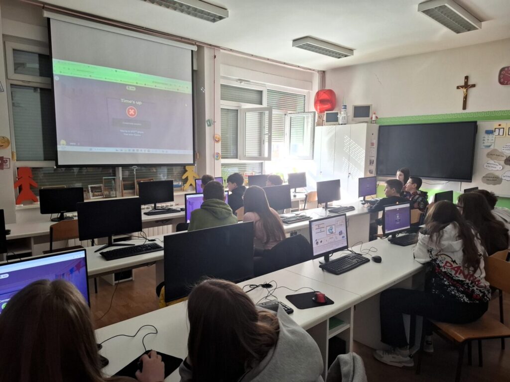 Učenici su rješavali online kviz „Glasno o novcu“ na Kahoot! platformi. Za što bolji plasman bilo je važno biti brz i točan te najpreciznije odgovoriti na pitanje procjene.