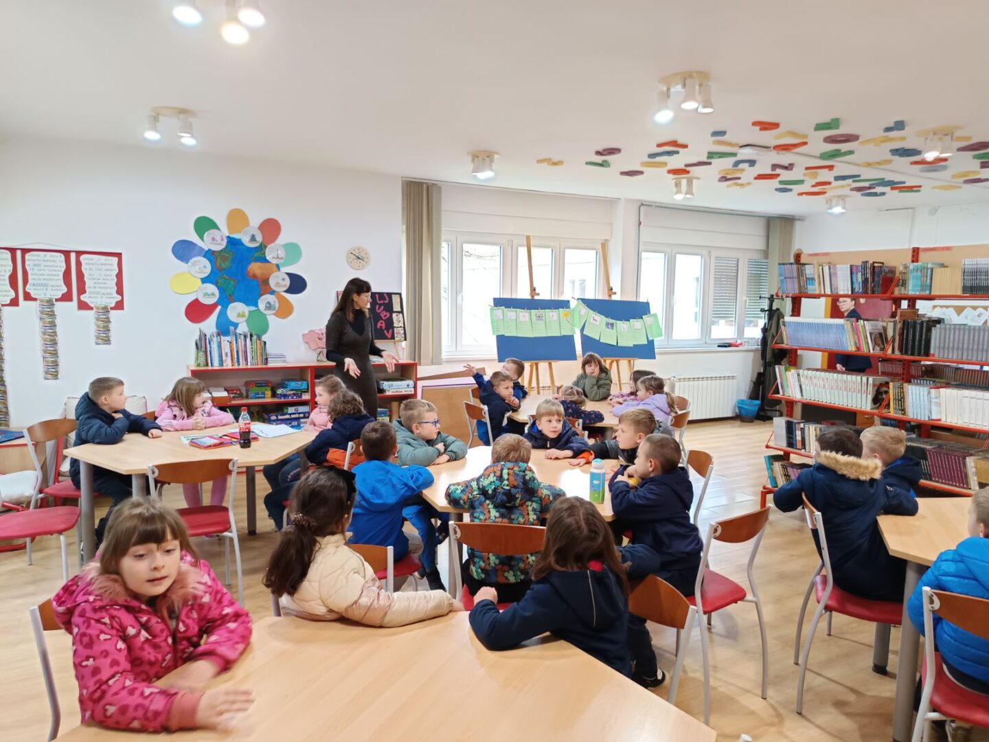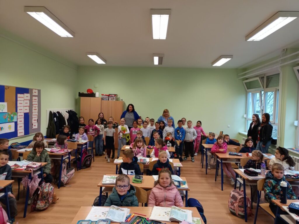 U školu su nam došli najdraži posjetitelji, grupa predškolaca iz DV Banija u pratnji svojih odgajateljica. Prvo su posjetili prijatelje u 1.a razredu koji su im pokazali što sve nose u školskim torbama i pernicama i kako ih spremaju. Jedni druge počastili su pjesmom, a na trenutak su zamijenili mjesta te su vrtićanci sjeli u klupe školaraca. Naši su se mali gosti zatim uputili u školsku knjižnicu gdje su crtali i poslušali priču. Ovaj tjedan neki od njih već su se vratili u školu zbog važnog zadatka – predbilježbi za upis u prvi razred.