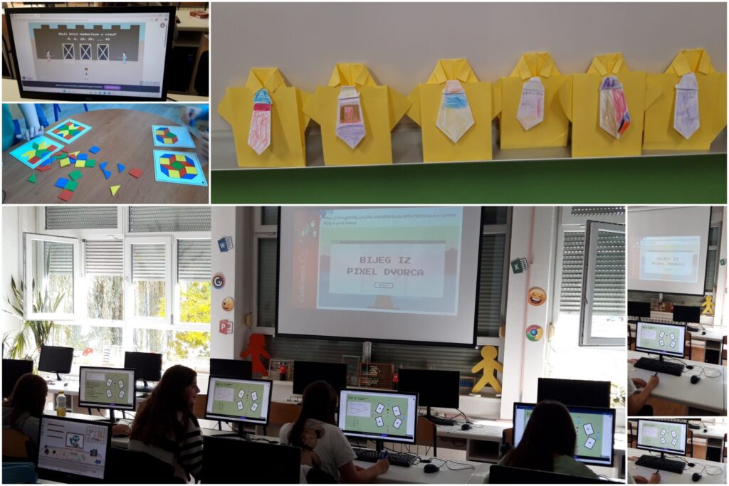 Učenici prvih razreda okušali su se u „Kodiranju na papiru”, razvijajući logičko razmišljanje rješavajući labirinte, crtajući upute algoritmima i izrađujući kravate origami tehnikom.